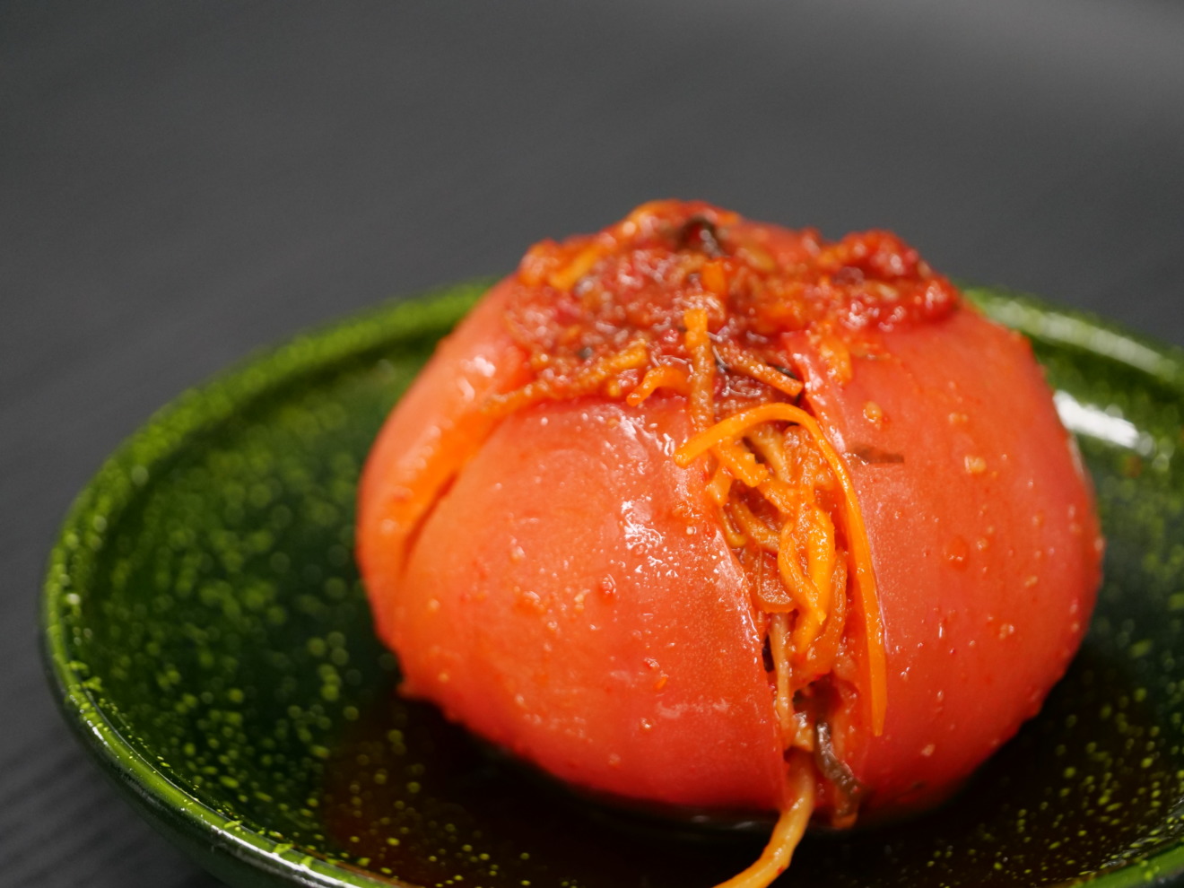 トマトキムチ キムチ 大きなトマト丸ごと一個にキムチの具材をたっぷりと挟んだ トマトキムチです。 ざく切りにしてサラダに入れたり、フライパン入れふわっと焼いた玉子を皿に取り、その上にキムチたれごとかけたり、夏は刻んでそうめんと一緒に、冬はチーズトマト鍋でとアレンジ色々です。 生クリーム多めのボロネーゼパスタに、トマトキムチ乗せもお勧めです! もちろんそのまま食べても美味しい! 数量 トマトキムチ quantity ¥850 Add to cart 説明文 レビュー 内 容 量:1個 賞味期限:10日間 レビューを投稿する コメントをキャンセルメールアドレスが公開されることはありません。 全て必須項目です。 評価する Very poor Not that bad Average Good Perfect レビュー内容名前 メールアドレス 次回のコメントで使用するためブラウザーに自分の名前、メールアドレス、サイトを保存する。 関連商品 オイキムチ(胡瓜) ¥850 キャベツキムチ ¥900 長いもキムチ ¥850 【贈答用】スペシャルセット ¥4,100 ねぎキムチ ¥750 カクテキキムチ(大根) ¥850